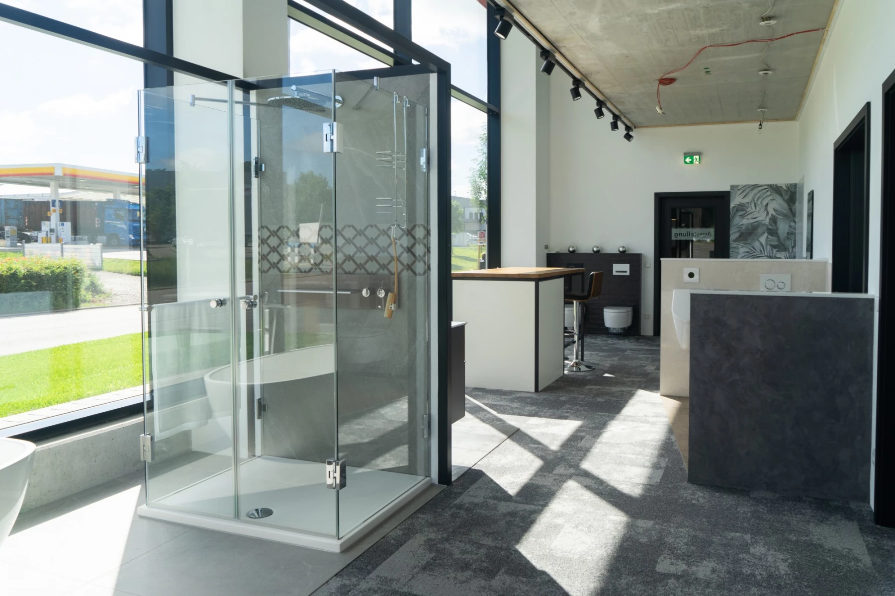 Neubau eines Betriebs- und Ausstellungsgebäudes in KfW55-Bauweise inklusive Ausstellungs- und Lagerräume